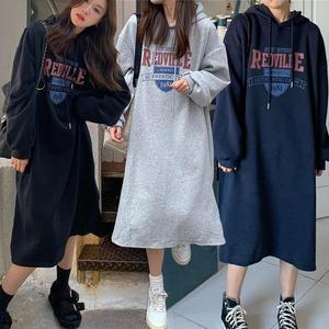 겨울 기모 여자 긴팔 티셔츠 티 맨투맨 프린팅 후드 박스 오버핏 롱