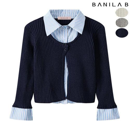 [바닐라비]여성 스트라이프 셔츠 레이어드 니트