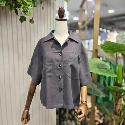 Latium HC06 기장 품 좋은 5부반팔 깔끔한 남방형 카라 린넨 셔츠블라우스 T2523bl34G