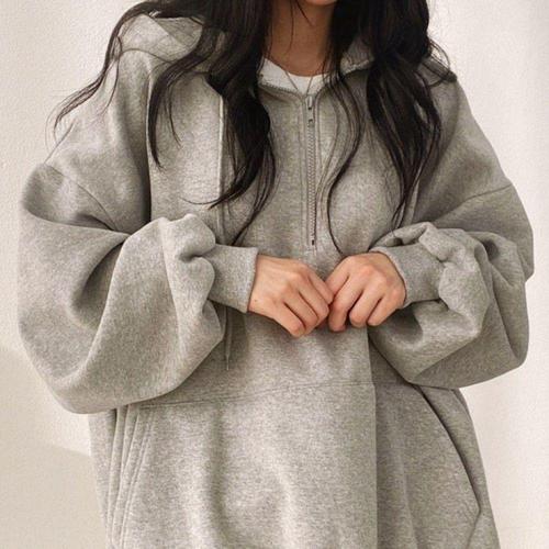 [유야]면 무지 반집업 긴팔 후드티 -TS0231H- 여성의류 가을 코디