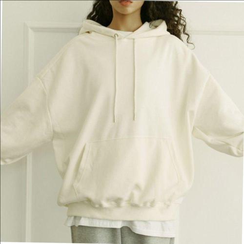 여성 아이보리 무지 베이직 양털 후드 티셔츠 ST-0301
