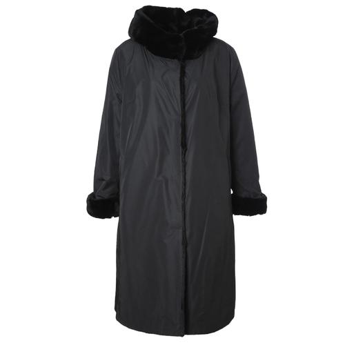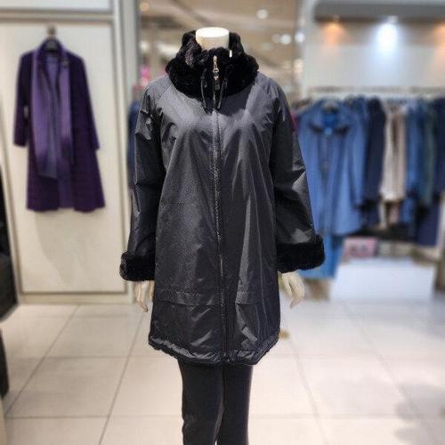 [조순희]고급스럽고 캐쥬얼한 카라밍크 안감 전체 토끼털 거위털 패딩코트 FMWC522 BK_BP