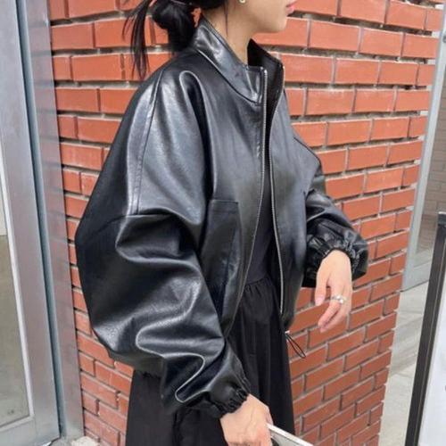 루제 시크 가을 겨울 오토바이 재킷 여성용 루즈핏 칼라 숏 코트 고급스러운 느낌 단색 출퇴근 스타일