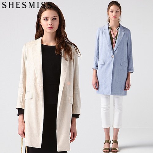 [쉬즈미스(SHESMISS)] 고퀄러티 마리니 베이직 린넨 세미오버핏 롱자켓