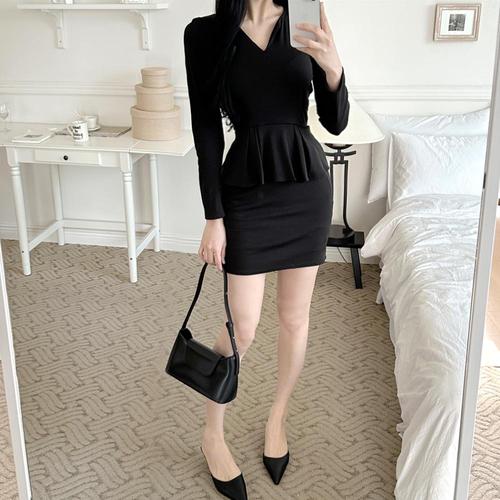 [옷자락] 여자 가을 겨울 정장 하객룩 브이넥 슬림 미니원피스