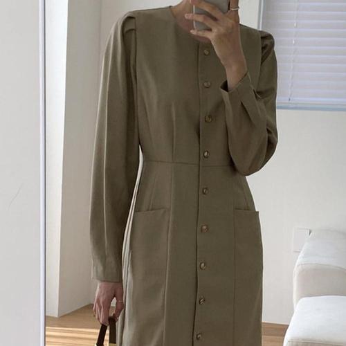 COSYEVNO 정장 원피스 패션 허리 조임 슬림핏 통근 비즈니스 여성 긴팔 A라인 미디스커트