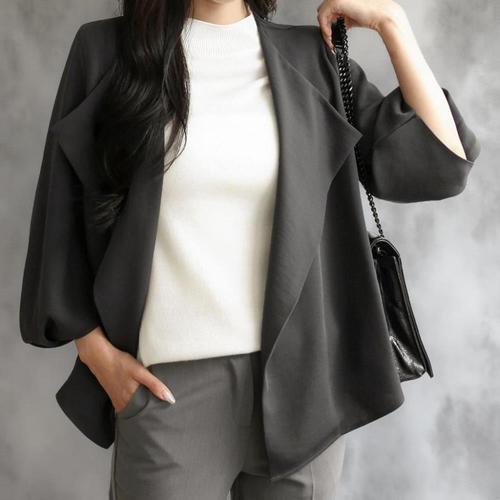 [옷자락]여성 가을 하객 퍼프 칠부 자켓 빅카라 노버튼 출근용