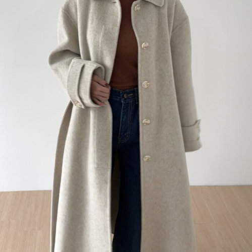 여성 통근 카라넥 루즈핏 모직 롱 코트