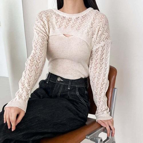 [셀럽하우스]크롭 ZMWN7575 여성 나시티 볼레로 레이어드 여자 니트세트 4색