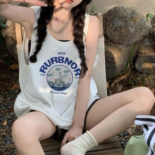 여성 민소매 여름 티셔츠 레이어드 루즈핏 나시티