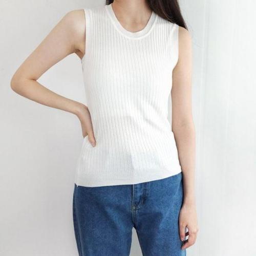 나시 민소매티 여성 골지 여름 티 플리츠 레이 WFLMR36