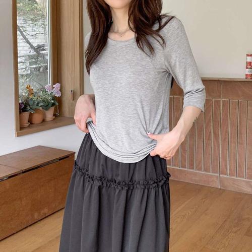 여성 민무늬 편한 클래식 레이폰 U넥 티셔츠