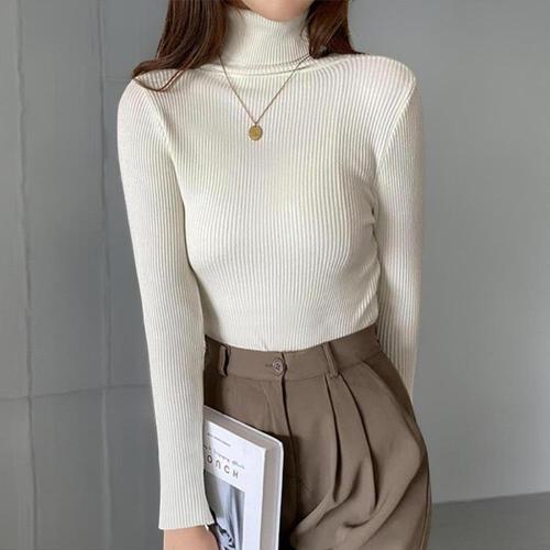[미라클세븐]여성 슬림핏 골지 터틀넥 니트 티셔츠 면혼합 데일리웨어