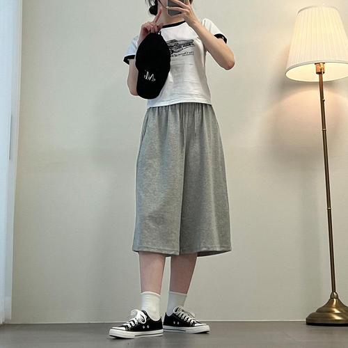 여성 넓은 SS 고무줄 하프팬츠 칠부 츄리닝팬츠