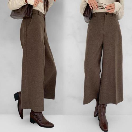 모직 와이드 팬츠 9부 팬츠 캐주얼 일자 여성 바지