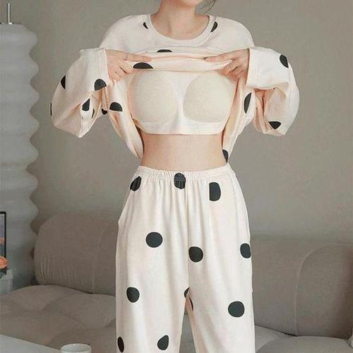 [셀러허브_여성트랜드패션]ONM 캡내장 맥시도트 파자마세트 가을잠옷 여성 파자마