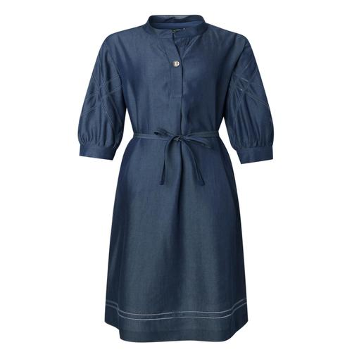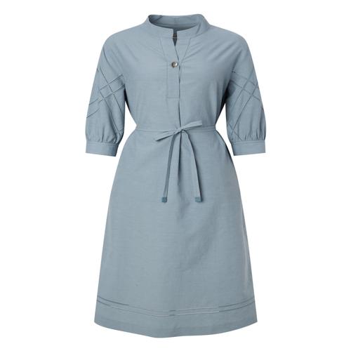 닥스 여성 블루 펀칭배색 린넨 혼방 7부 소매 롱 원피스 (DLDR5B407B3)