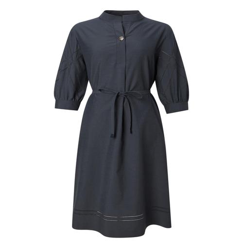 닥스 여성 차콜 그레이 펀칭배색 린넨 혼방 7부 소매 롱 원피스 (DLDR5B407CG)