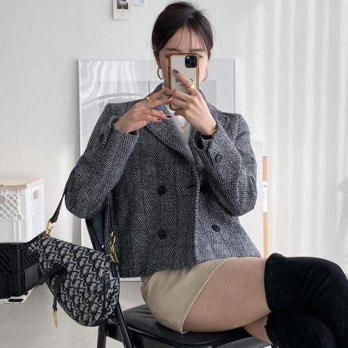 여자 크롭 헤링본 더블버튼 정장 셋업 숏자켓