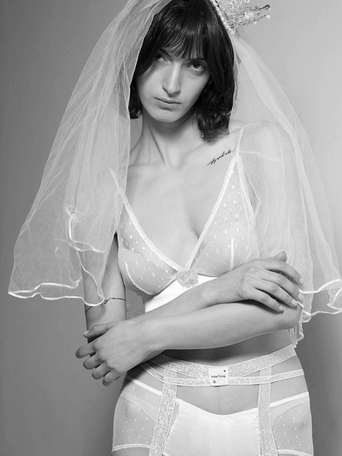 [언더띵] 빈티지 웨딩 화이트 도트망 홑겹 시스루 (브라렛+팬티) 세트