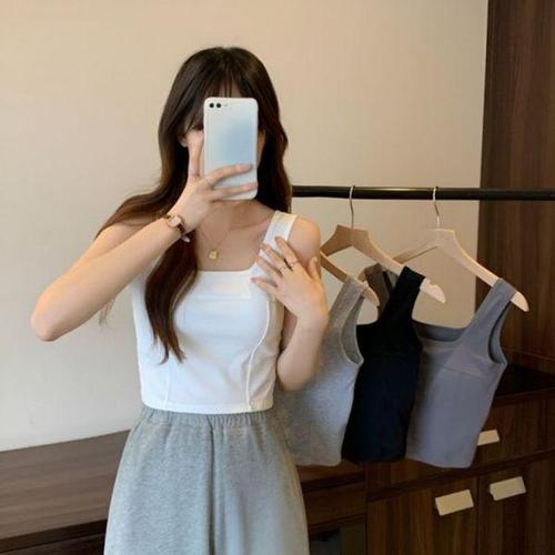 [에이치플러스몰]스퀘어넥 쫀쫀 추천 나시 가을옷 꾸안꾸 분위기적인