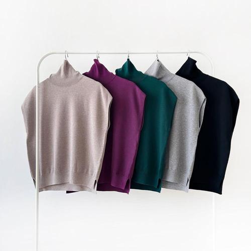 [옷자락] 여성 가을 하이넥 목폴라 니트 조끼 옆트임 오버핏무지