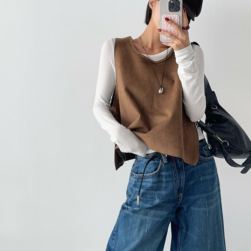에르디테 / 에르디테 스웨이드 베스트 조끼 나시 옆트임 레이어드 루즈핏 2컬러