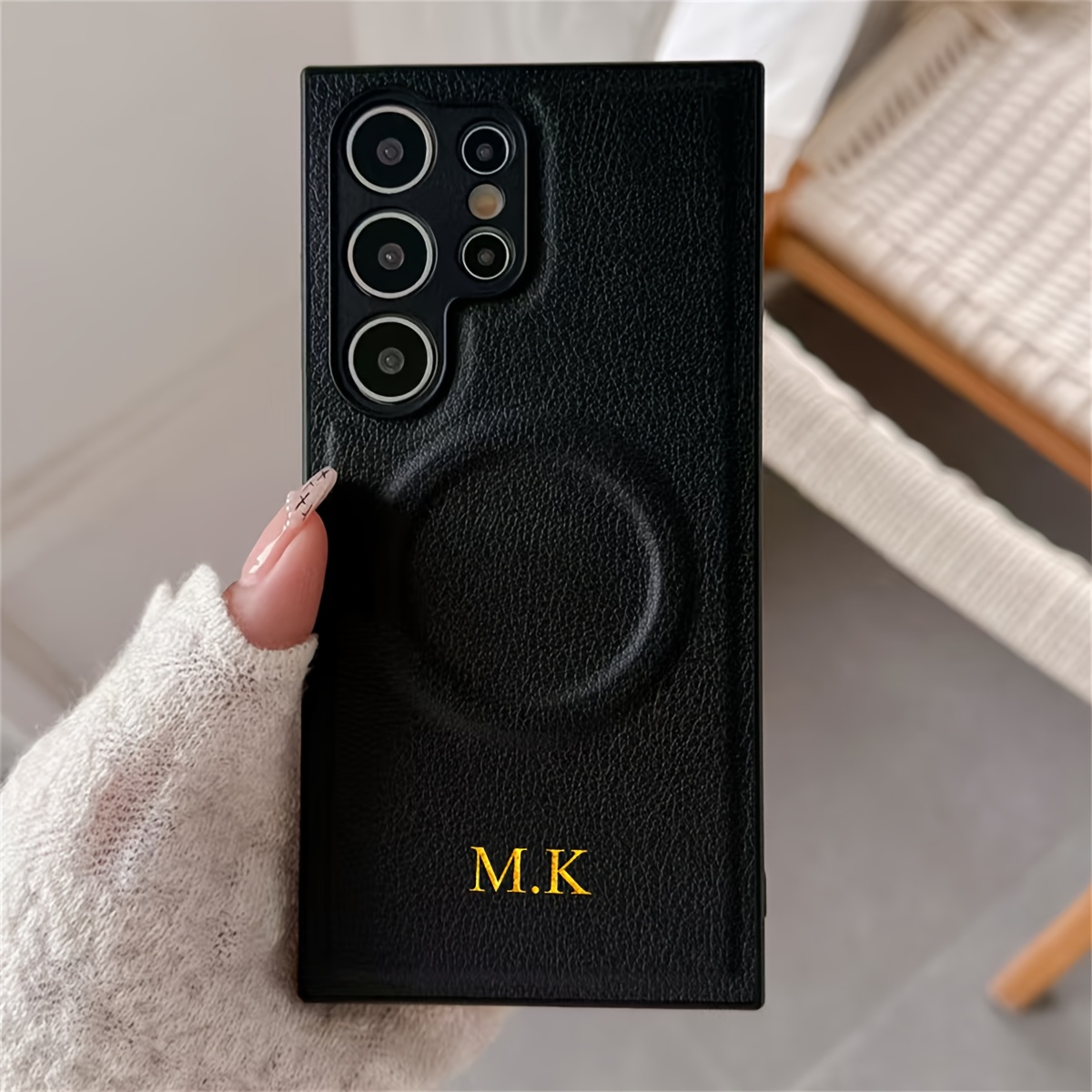 TEMU 개인화 골든 이니셜 맞춤형 심플 리치 인조 가죽 자석 무선 충전 휴대폰 케이스 - 삼성 갤럭시 S25 24 23 22 21 울트라 S24 S23 플러스 렌즈 보호 커버, 우아한 휴대폰 액세서리,리치 질감, 소재,기술 애호가,패션에 민감한 구매자들