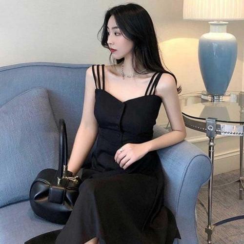 [모노무드]모노무드 올블랙 나시 여성 롱 체형커버 데일리 예쁜 원피스