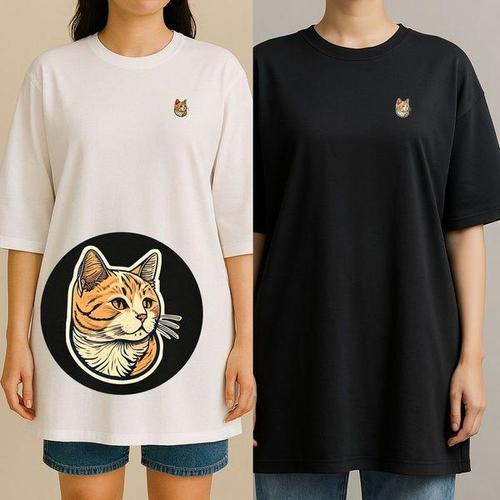 남녀공용 빅사이즈 88 귀여운 오렌지 냥이 프린팅