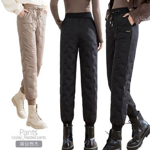 POMTOR 겨울 오리털 빅사이즈 패딩 바지 여성 방한 기모 배기 팬츠