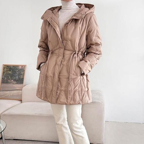 [다잇템]여자 후디 드로우코드 오리털 허리슬림핏 점퍼 (23744081A)