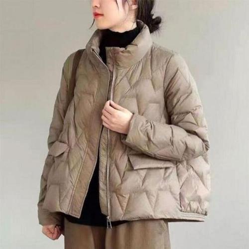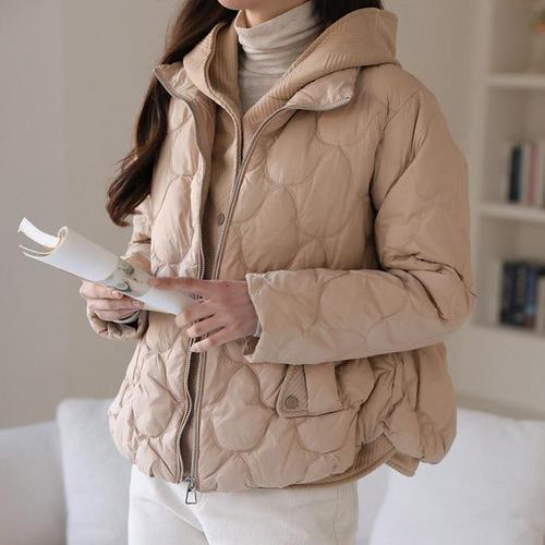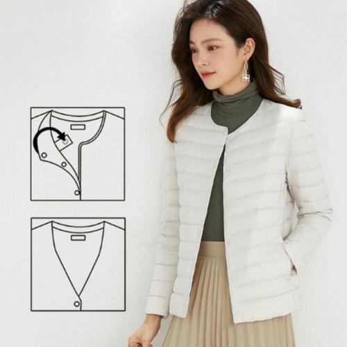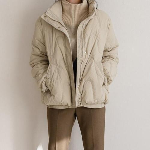 BIKASU 여성 캐주얼 노카라 경량 숏패딩 오리털 빅사이즈 패딩 겨울 점퍼 아우터