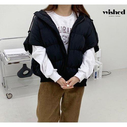 [위시드]오버핏 데일리 후드 패딩 베스트 (WIADVT015)