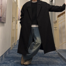 [브리치] / 이펜 남자 루즈 오버핏 더블 모직 떡볶이 롱 코트