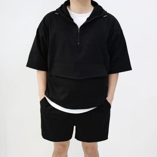 [엠클로]남자 오버핏 셀러 쿨 분또 후드 반집업 아노락 반팔티셔츠 (4color)