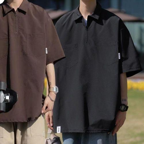 [에이치플러스몰]남자 반팔아노락 오버핏 카라 반팔 티셔츠 박스티 포켓 반팔티