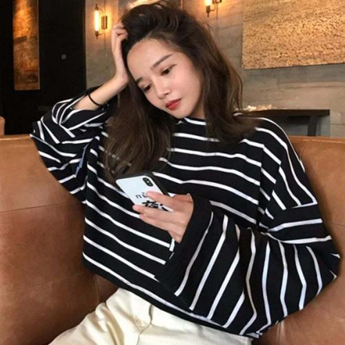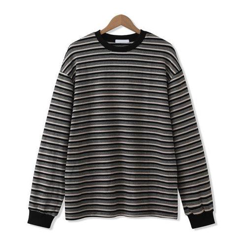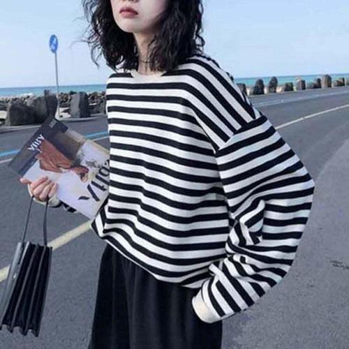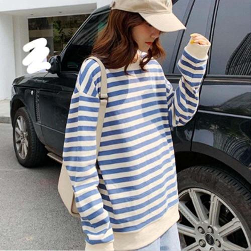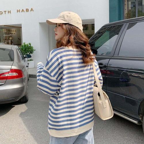 [셀럽하우스]여성 ZNKT3595 스트라이프 맨투맨 긴팔티 루즈핏 데일리 티셔츠