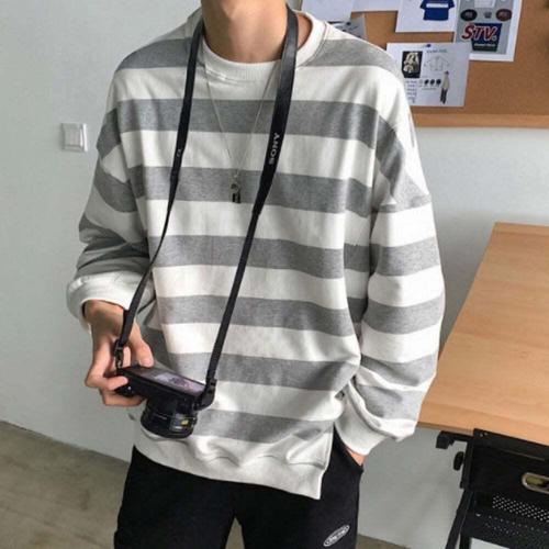 [셀럽하우스]옆트임 UIRC1024 스트라이프 긴팔티 맨투맨 오버핏 캐주얼룩