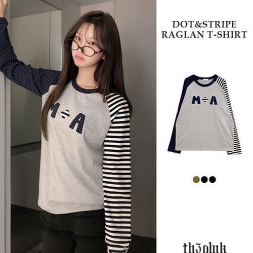 더핑크 / 얼든 루즈핏 나그랑 도트 스트라이프 패치 긴팔티