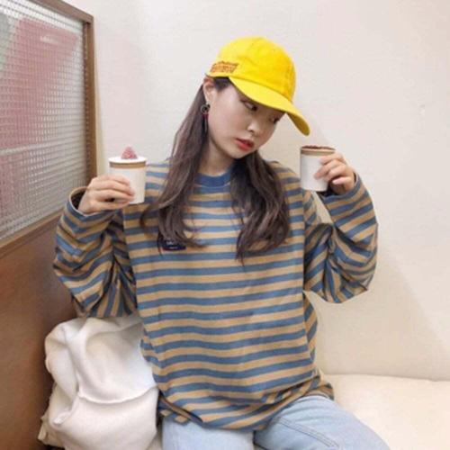 [셀럽하우스]여자 SYSO0165 줄무늬 루즈핏 간절기 맨투맨티 가을 긴팔티