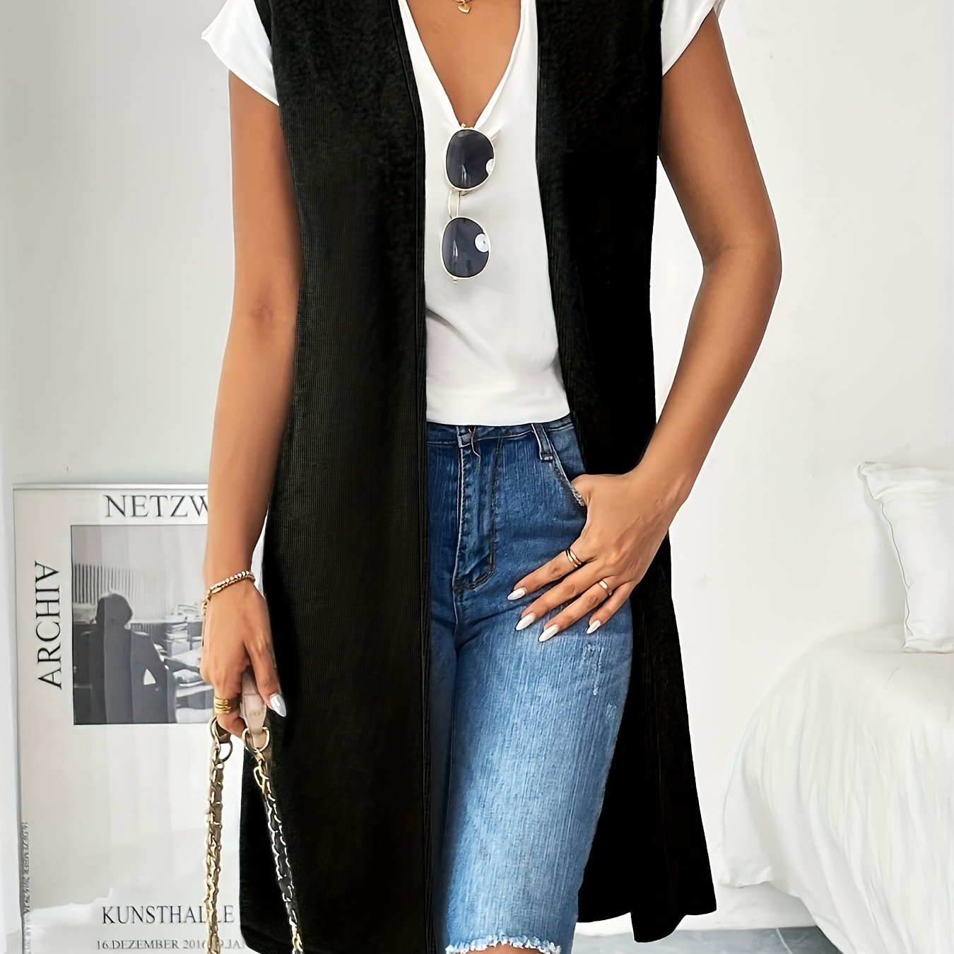 TEMU 여성용 우아한 민소매 재킷 - 겨울용 따뜻한 칼라 코트, 세탁기 사용 가능한 단색 (블랙/네이비/차콜) - 사무실, 출퇴근 및 캐주얼 착용 - 주름 방지 롱 카디건