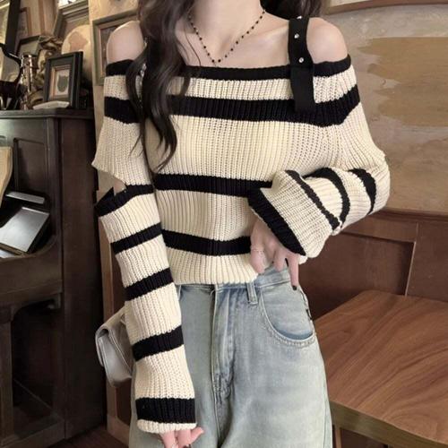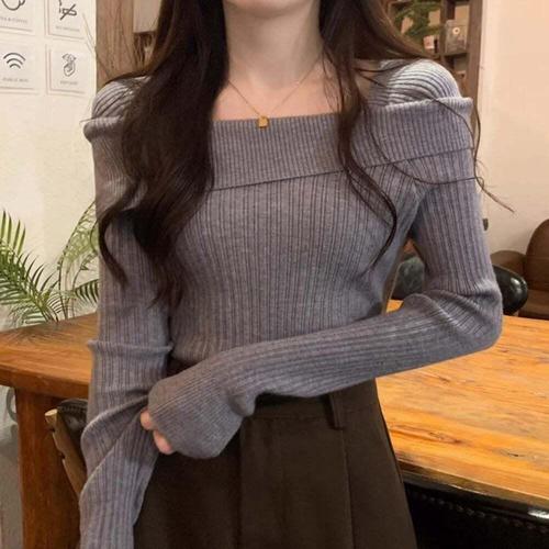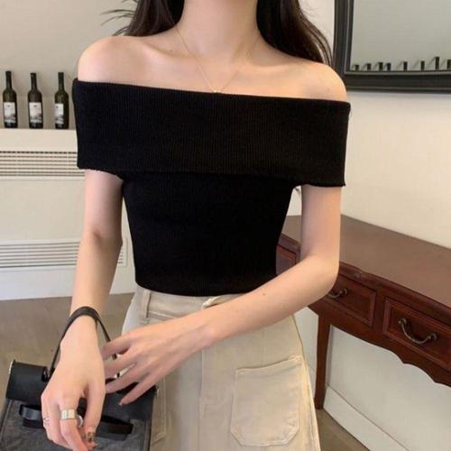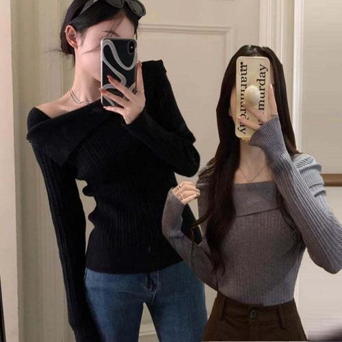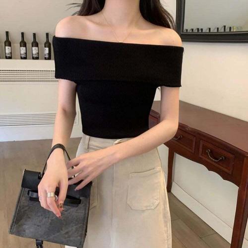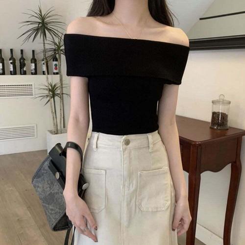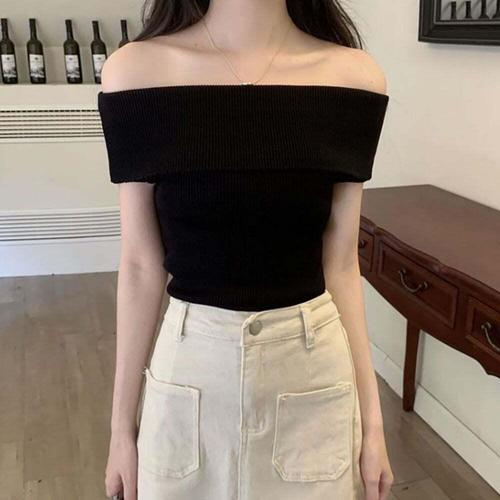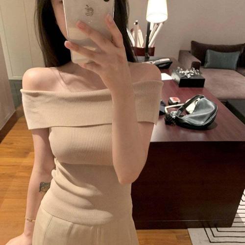 [셀럽하우스]여자 PRFR8440 여름 오프숄더 골지 슬림 스타일 니트