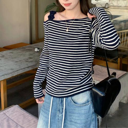 [셀럽하우스]여성 FTDQ8179 플라워 오프숄더 니트티 스트라이프 여리핏 긴팔