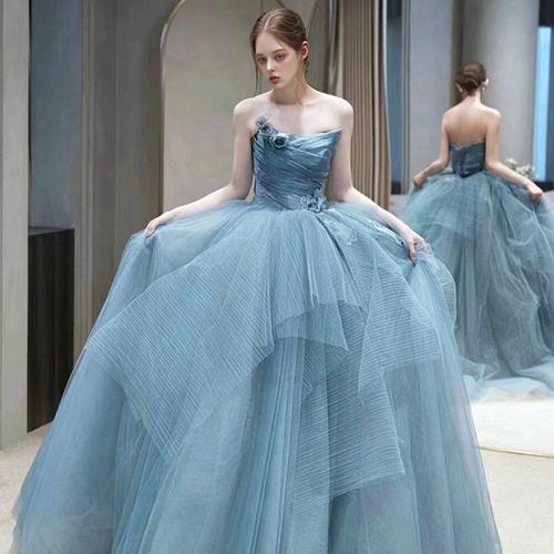 [교복몰]애쉬블루 플라워 오프숄더 프릴 드레스 교복 학생복