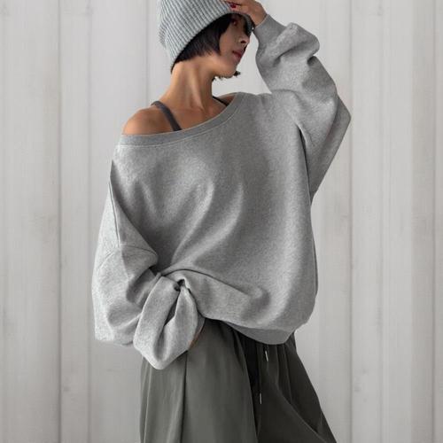 [신상오픈런]여성 오프숄더 맨투맨 오버사이즈 무채색 티셔츠