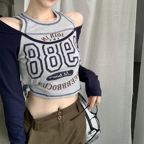 [에어플레인]Y2K 빈티지 레이어드 오프숄더 긴팔티(2color)