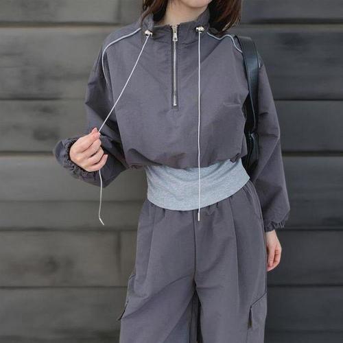 [미라클세븐]여성 아노락 스트링 크롭 반집업 와이드 팬츠 세트