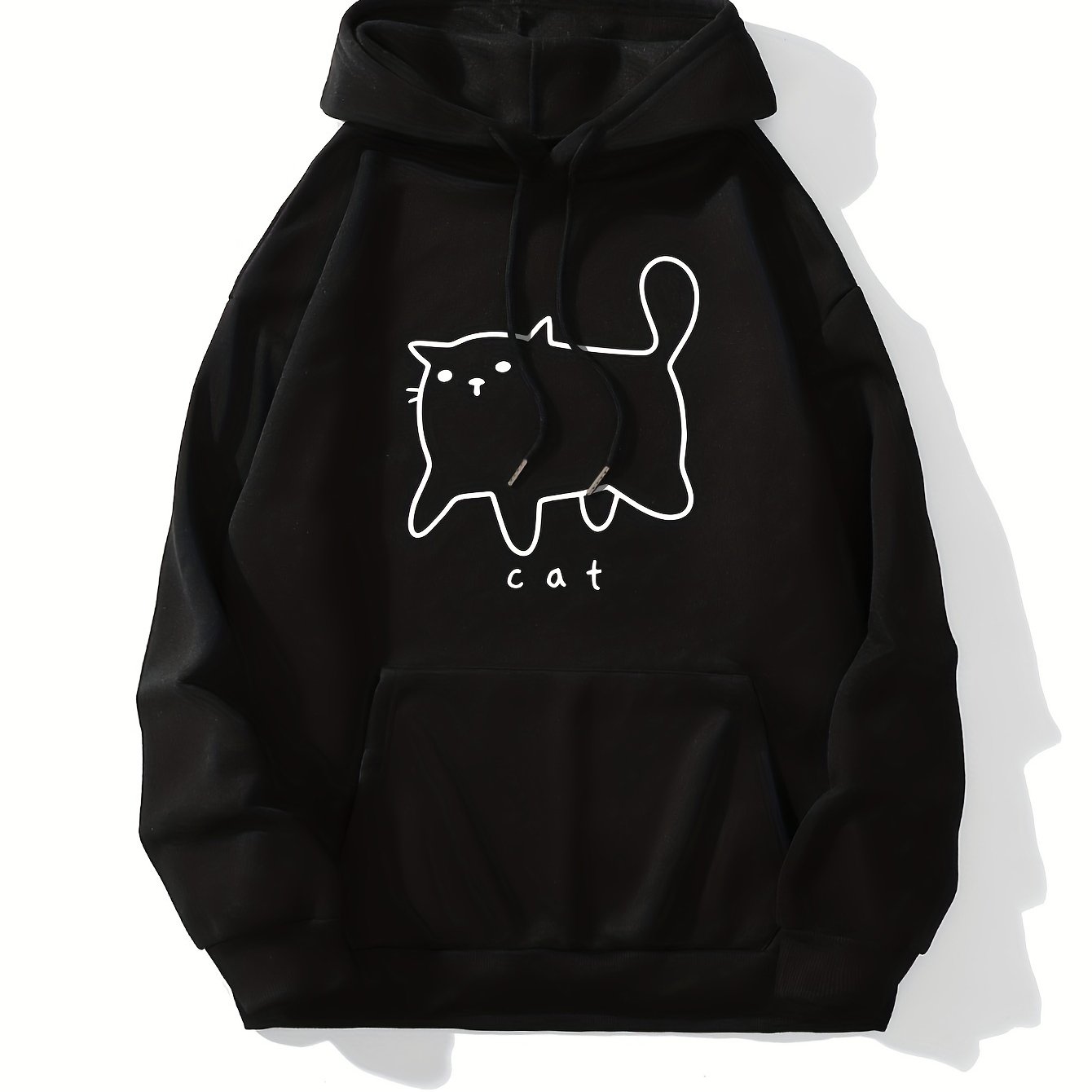 TEMU 귀여운 고양이 프린트 까마귀, 다재다능한 졸라매는 끈 캥거루 포켓 후드티 스웨트 셔츠, 여성 의류