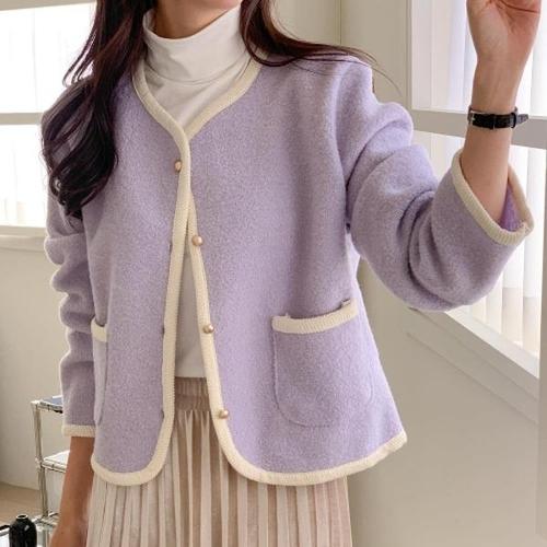 [다잇템][다잇템] 여자 금장버튼 울자켓 청초 가을소개팅룩 콘트라스트 가디건_18667681_588872